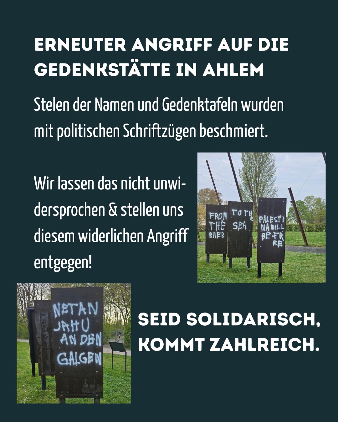 Achtung: Die Kundgebung findet am Mahnmal der Gedenkstätte statt, nicht an der Bildungsstätte. Einfach bis zur Endhalte der Stadtbahnlinie 10 Richtung Ahlem fahren und noch ca. 5 min in Fahrtrichtung weitergehen.
