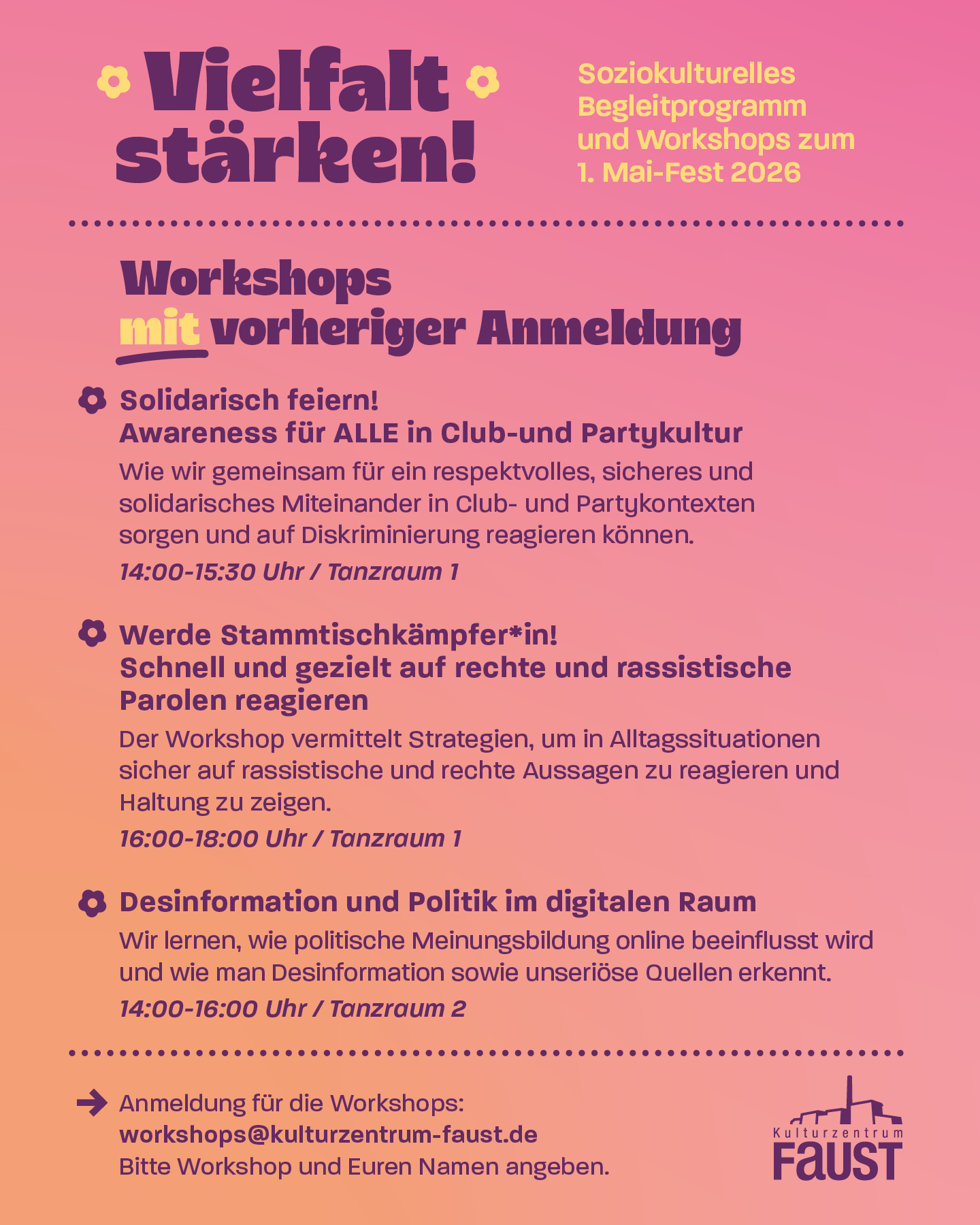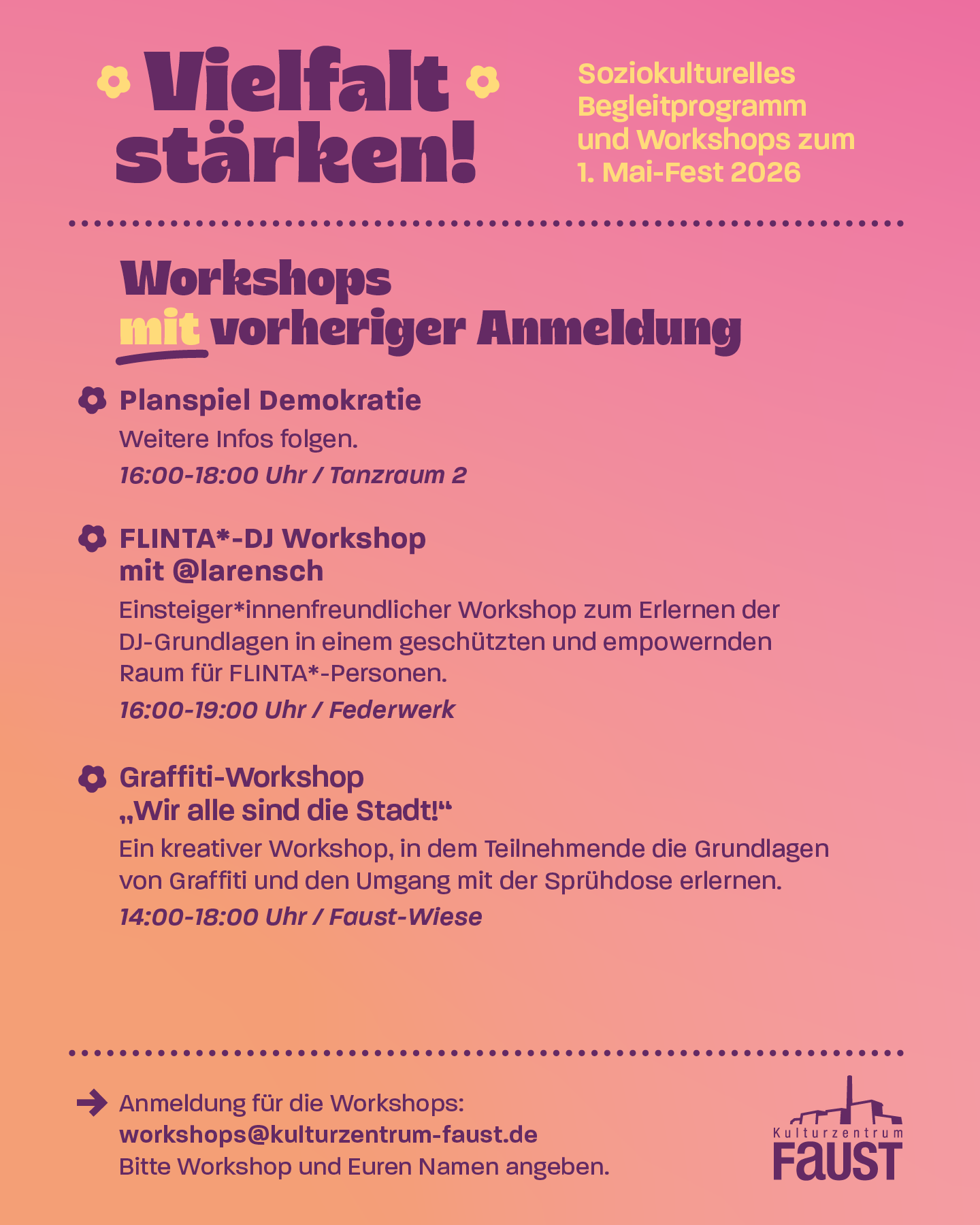 Kontakt: workshops@kulturzentrum-faust.de